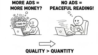 月間7,500PVでアドセンス広告を外した理由。一番怖かったのは数字の減少ではなく、自分のブログが「読みづらい場所」になることでした。効率や収益よりも、読者の心地よさと記事の“呼吸”を優先した結果、見えてきた「数字よりも大切なもの」を綴ります。