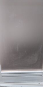 浴室のアクリル板の扉に、うっすらと見える白い垂れ跡。