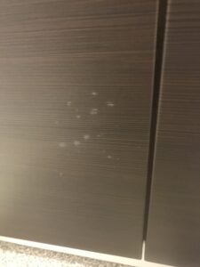 最近の事例として、濃い色の洗面台扉にできる白い斑点も、汚れと変質を間違えやすい代表例です。
