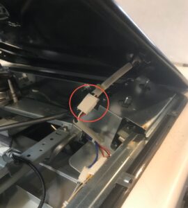「ガスコンロの天板に配線なんてないだろう」と思うかもしれませんが、これはコンロの温度センサーや点火装置に関わる配線である可能性が高いです。