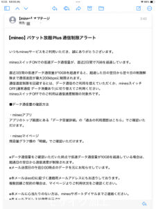 mineoから「直近2日間で7GBを超過しています」という、初めての速度制限アラートメールが届いたのです。