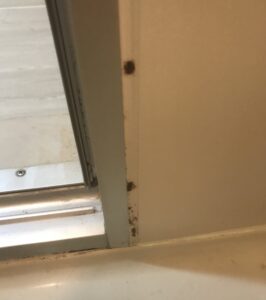 浴室のドアパッキンに生えた黒カビ。