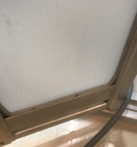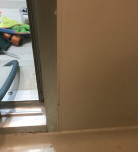 ※補足として:レール下の一番細いパッキンは、カビ隠し材を塗って対応しました。築年数が古い物件では、最終手段として許されることもあります。(笑)