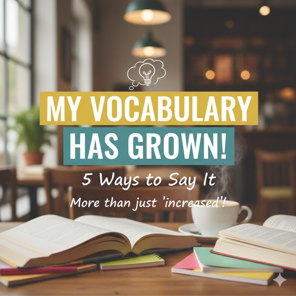 まずは一番しっくりきた “My vocabulary has grown.” から使ってみませんか?