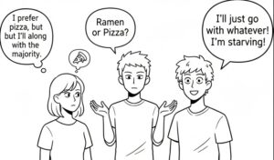 「自分の意見はあるけれど、ここは多数派の意見に喜んで合わせます」