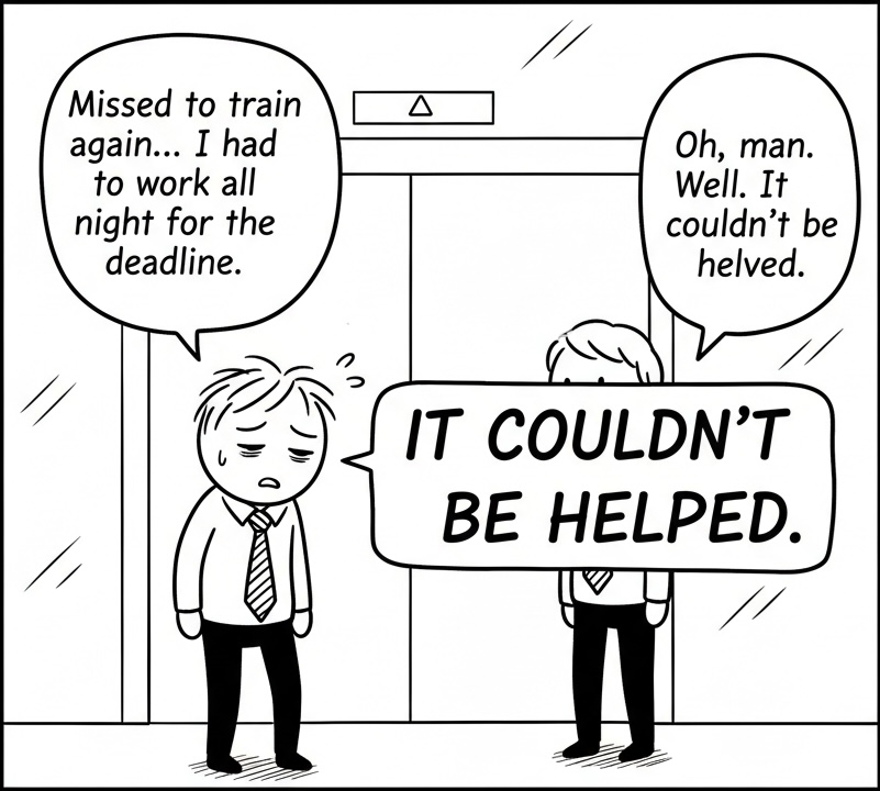 It couldn’t be helped. (イット・クドゥント・ビー・ヘルプト)