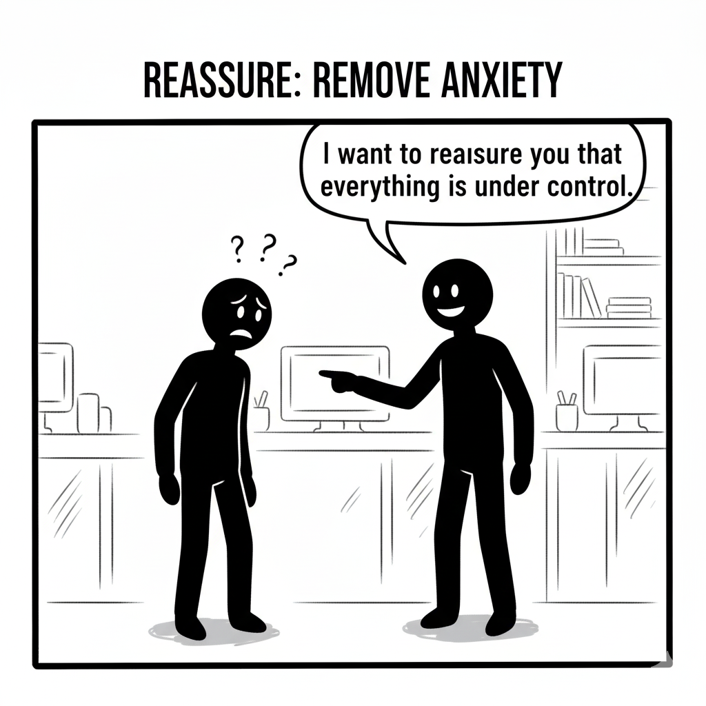 reassure は、相手の心配や不安に対して「大丈夫だ」と伝える言葉です。