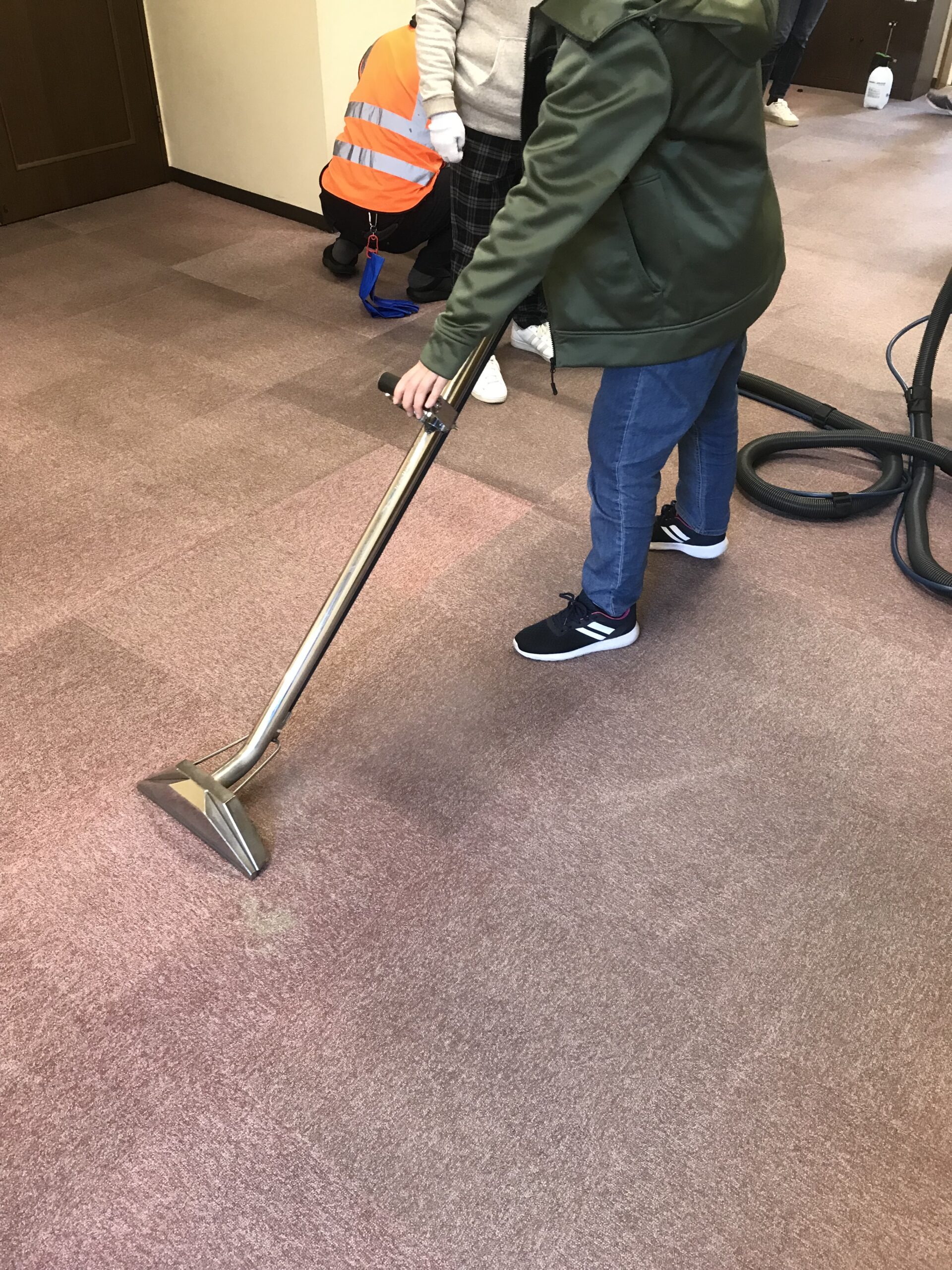 蔵王製パイルブラシ掃除機と強力リンサーを使い、