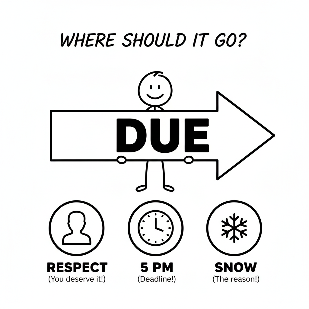 due の意味②「期限・締め切り・予定」|時間に向かう矢印