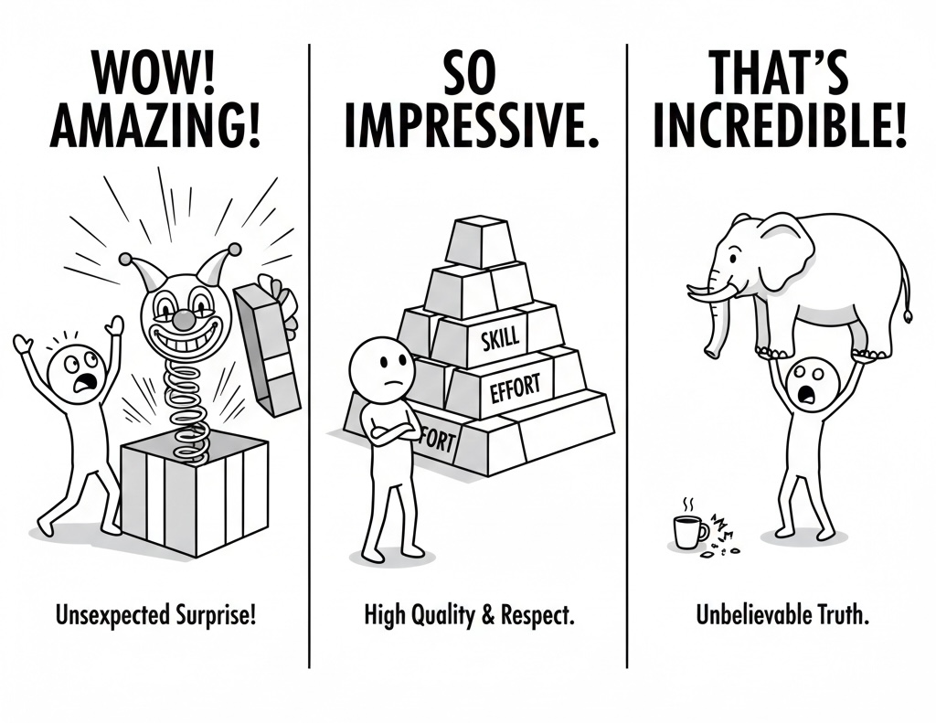👉 同じ「すごい」でも、驚き・圧・非現実性の違い。