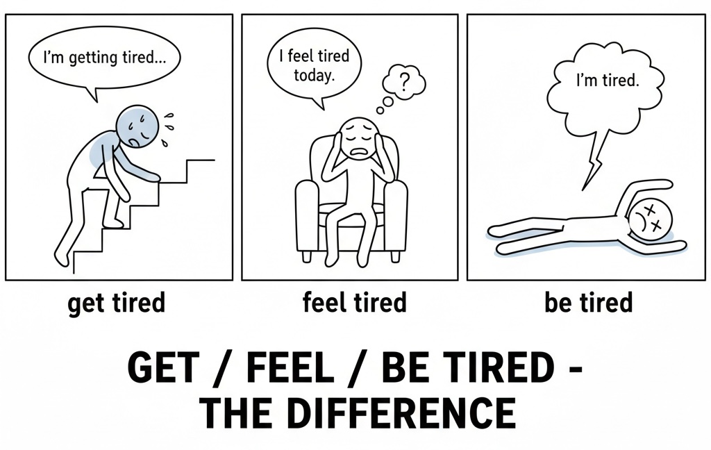 get tired / feel tired / be tired の違いを感覚でつかむ