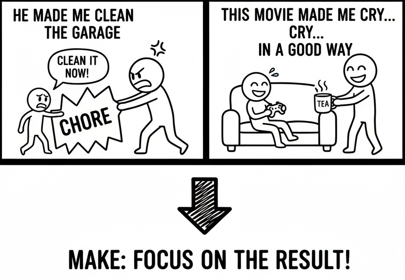 ポイント:make は「作業」より「結果」