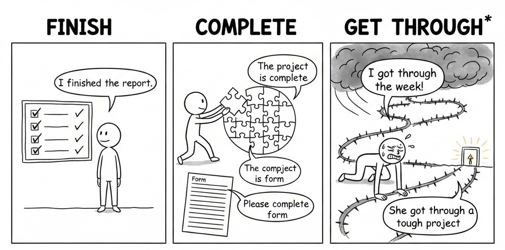 finish / complete / get through は、