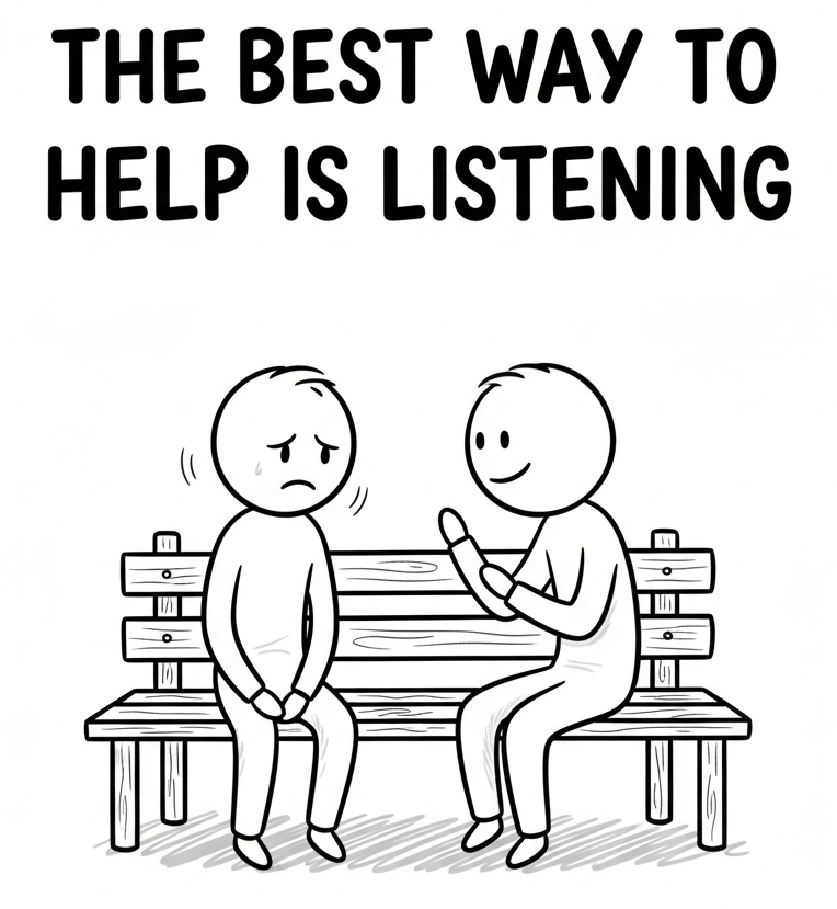 (誰かを助ける一番の方法は、よく話を聞くことだよ)