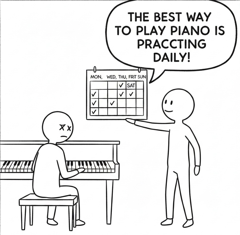 (絵を上手くなる一番の方法は、毎日少しずつ練習することだよ)