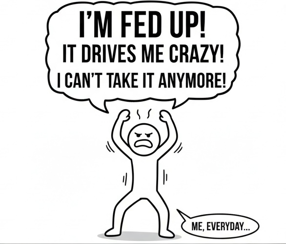 ちょっとしたイライラ → “I’m frustrated.” / “It drives me crazy!”