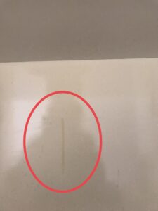 クローゼットの扉を開けた瞬間、内部の壁面に垂直に伸びる茶褐色の垂れ跡が目に入りました。