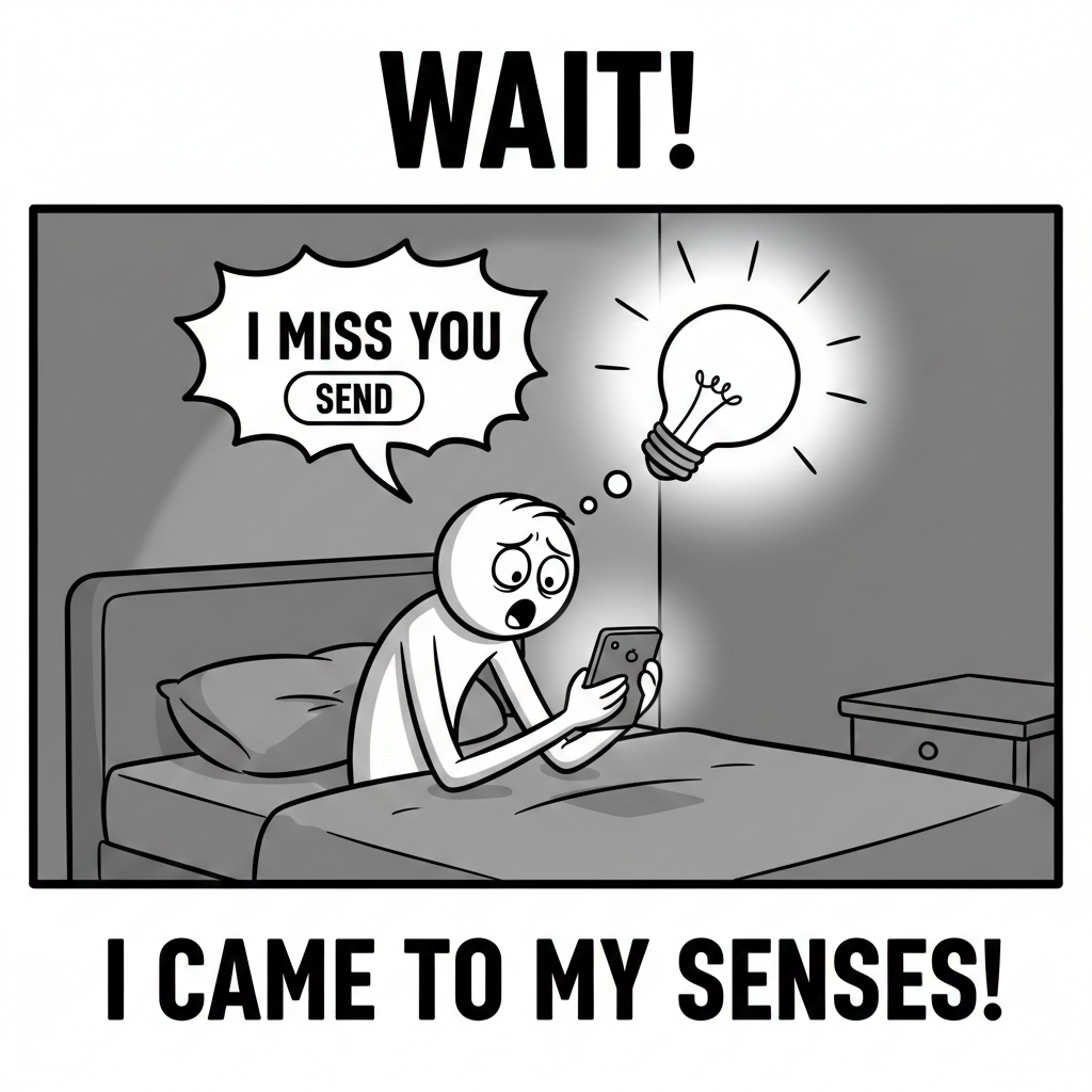 (元カレにメッセージしそうになったけど、やっと正気に返ったよ。)