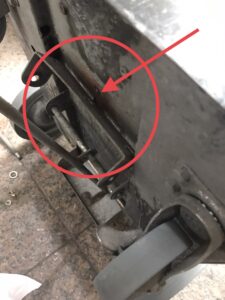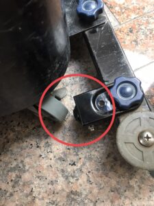 確認すると、キャスターとスクイジーの補助タイヤが完全に干渉していました。